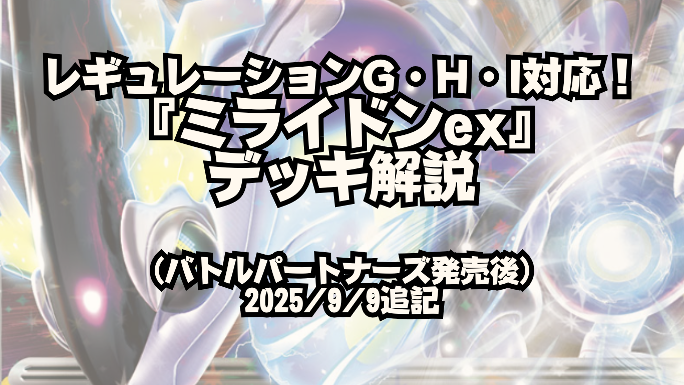 ミライドンexデッキは、1ターン目から盤面を整え、相手が準備し終わる前に攻め切るスピード型デッキ です。