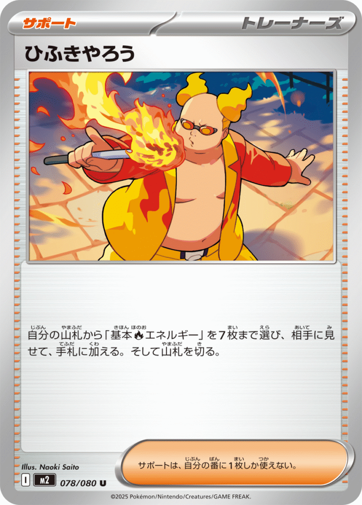 火力が非常に高く、同パック収録の「ひふきやろう」との相性も良好。構築を寄せれば、思った以上に使いやすいポケモンになりそうです。